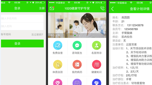 健康專家醫療手機app案例:健康醫療,一款方便醫生和患者交流溝通的社交移動手機應用,是一個專業的具備移動醫療咨詢服務、個人健康計劃以及親人健康管理的應用軟件。健康醫療移動應用有別于純咨詢類的社交軟件,可以提供個人用戶管理自己和親人健康的實用醫療手機應用。1.主APP界面展示
