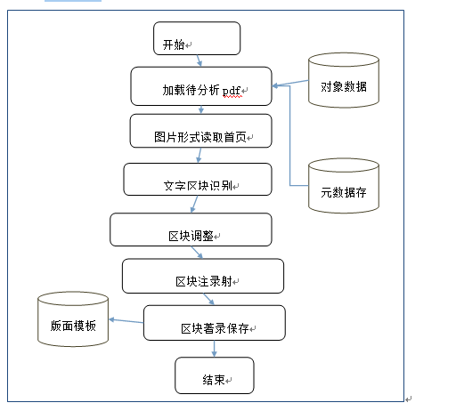 版面分析:對同類資源的pdf文件,進行版面格式化分析,人工標注標題、摘要、作者等版面區域,對區域內的文字內容進行識別,錄入到相應的元數據字段中。