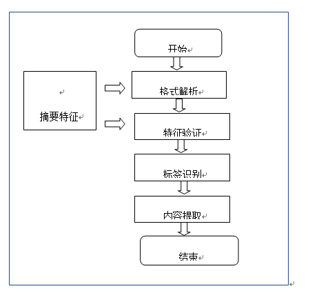 基于OCR內容識別后,對摘要信息的識別,摘要具有在正文獨立成章節的特點,如:Abstract:XXXX的特征。