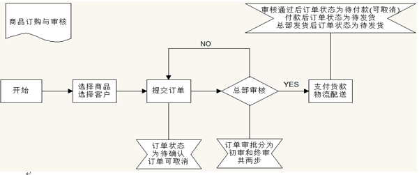 - 商品訂購:選擇商品->選擇客戶->提交訂單->等待審核->確認(rèn)支付->等待收貨。