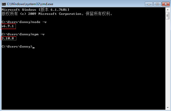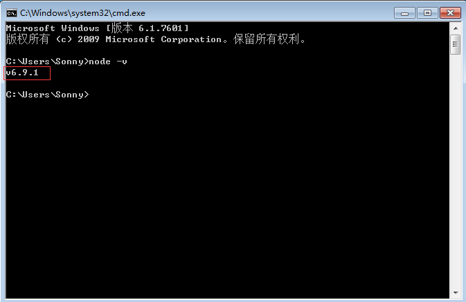 從node.js官網下載并安裝node,安裝過程點擊下一步下一步, 安裝完成之后,打開命令行工具,輸入 node -v,如下圖,如果出現相應的版本號,則說明安裝成功。