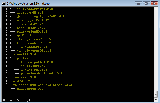 在命令行中運行命令 npm install -g vue-cli ,然后等待安裝完成。通過以上三部,我們需要準備的環境和工具都準備好了,接下來就開始使用vue-cli來構建項目。